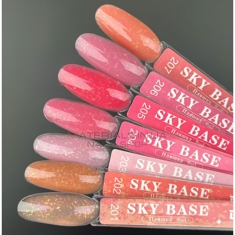 Sky Base – базовое покрытие с золотой поталью для изысканных дизайнов. Обладает высокой эластичностью и идеально подстраивается под структуру ногтя. Подходит для тонких и ломких ногтей, максимально укрепляя их от ушибов и изломов.
