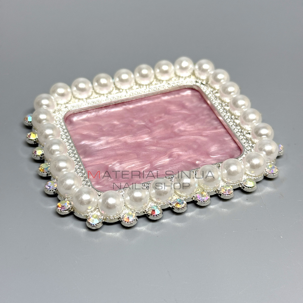 Декоративная палитра для гелей и красок, прямоугольная с жемчужным и стразовым украшением
