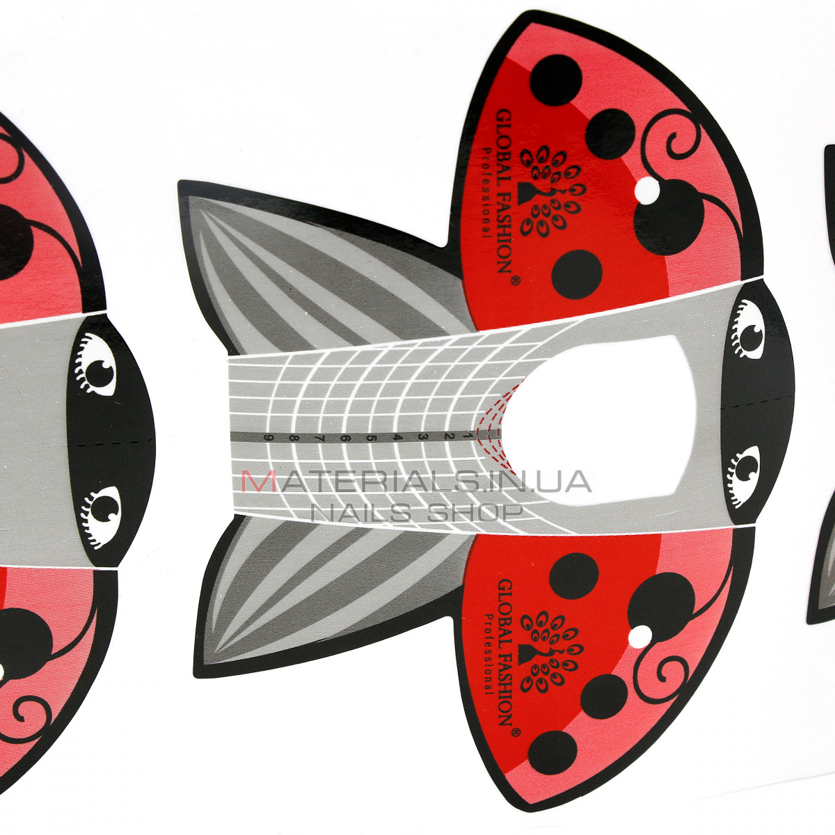 На поверхні форм нанесені розмічувальні лінії, які допомагають точно контролювати довжину й симетрію нарощених нігтів.