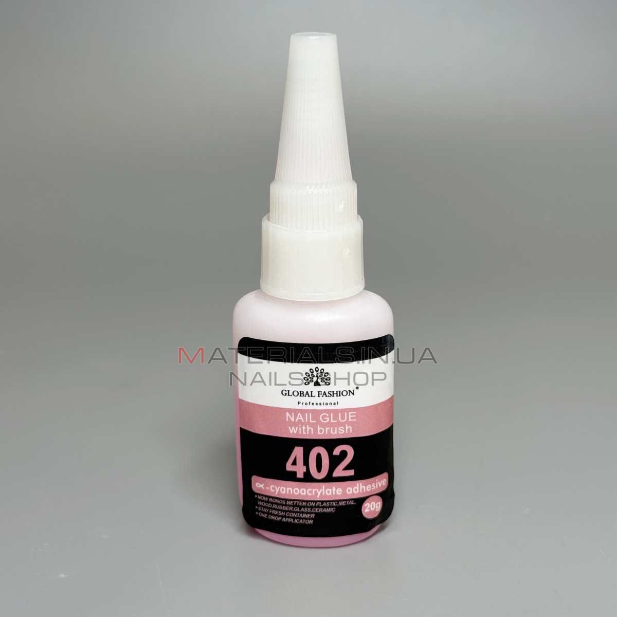 Професійний клей для нігтів Global Fashion 402 на основі ціаноакрилату, зі зручним пензликом. Застосовується для швидкого та надійного кріплення типсів, страз, прикрас, ремонту нігтів, а також для різних робіт із пластиком, металом, деревом, гумою, склом та керамікою.